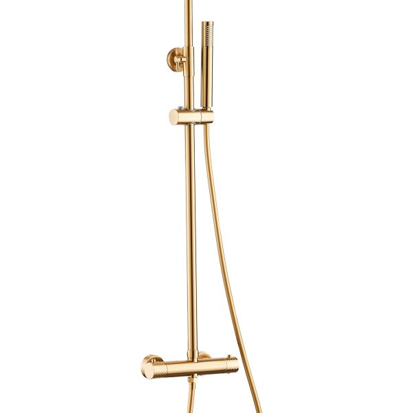 VALAZ Barra de ducha termostática redonda dorado cepillado Serie Birim – 25cm