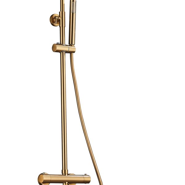 VALAZ Barra de ducha termostática redonda ajustable hasta 120CM dorado cepillado Serie Ebro – 20cm