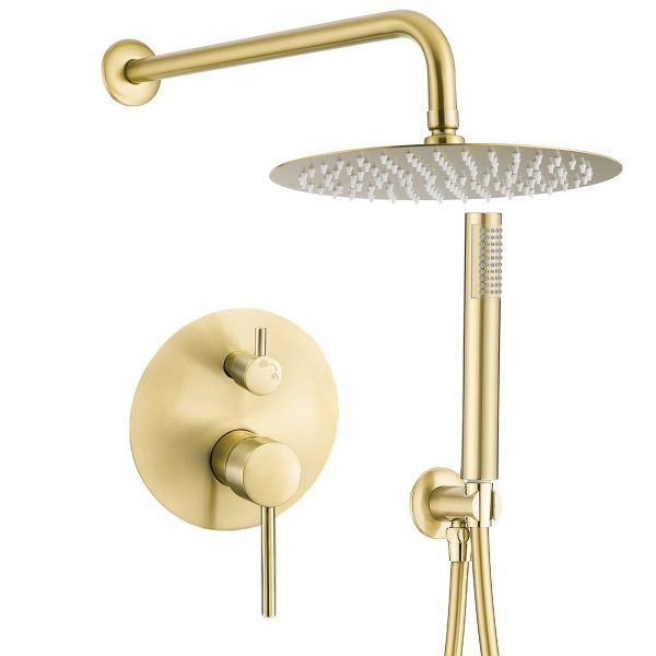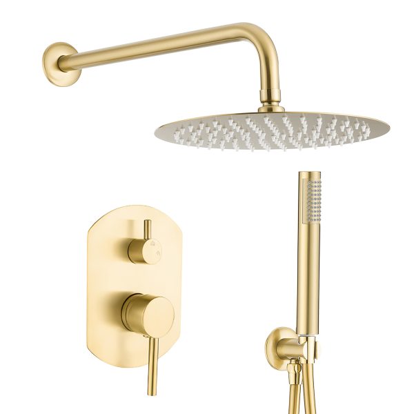 VALAZ Ducha empotrada monomando pared redonda dorado cepillado – Serie Jucar – 25cm