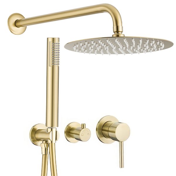 VALAZ Ducha empotrada de bañera a pared oro mate con protección PVD – Serie Jucar – 25cm