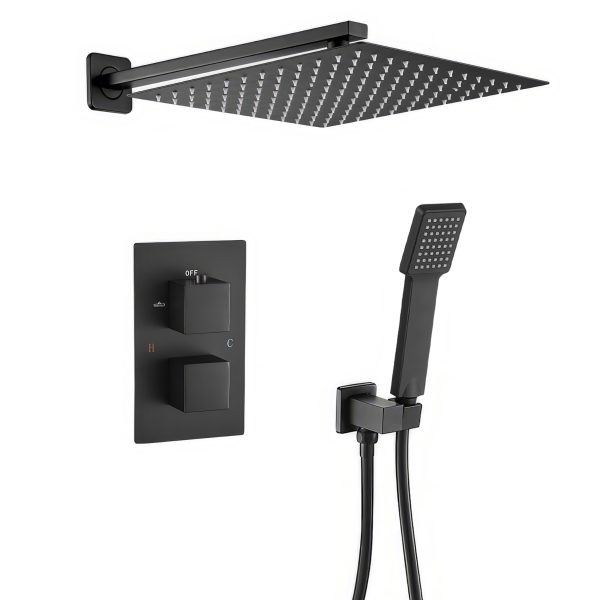 VALAZ Ducha empotrada termostática a pared cuadrada negro mate – Serie Eresma – 40cm