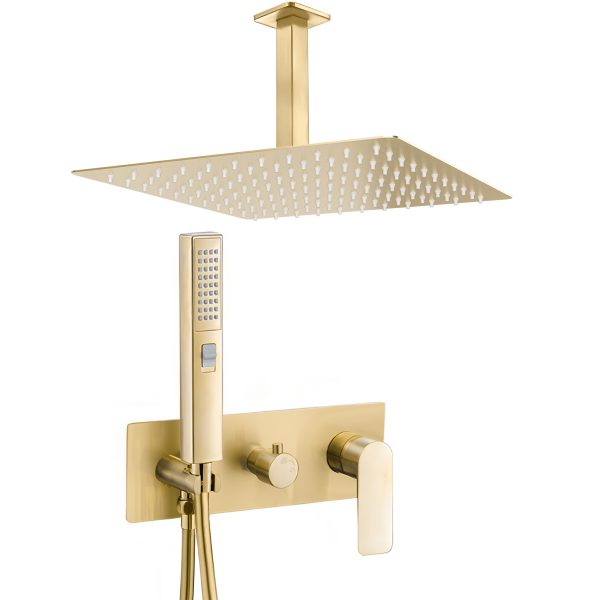 Ducha empotrada monomando cuadrada a techo oro mate cepillado serie Miño – 30cm