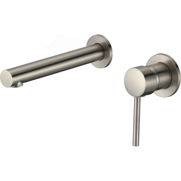VALAZ Grifo de lavabo empotrado redondo caño recto acero cepillado – Serie Guadalquivir