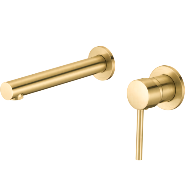 VALAZ Grifo de lavabo empotrado redondo caño recto dorado cepillado – Serie Guadalquivir
