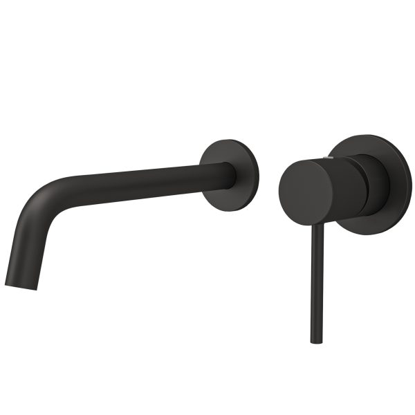 VALAZ Grifo lavabo empotrado redondo monomando negro mate acabado maneta luxury con caño de 21cm – Serie Ofin