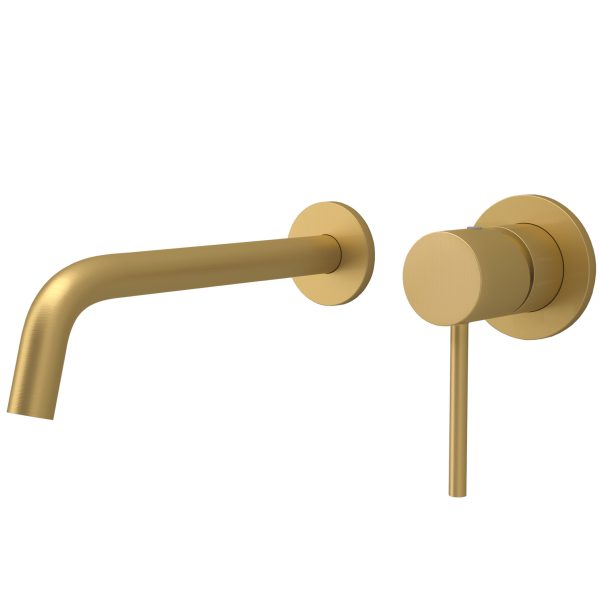 VALAZ Grifo de lavabo empotrado redondo monomando dorado cepillado acabado maneta luxury con caño 21cm – Serie Ofin