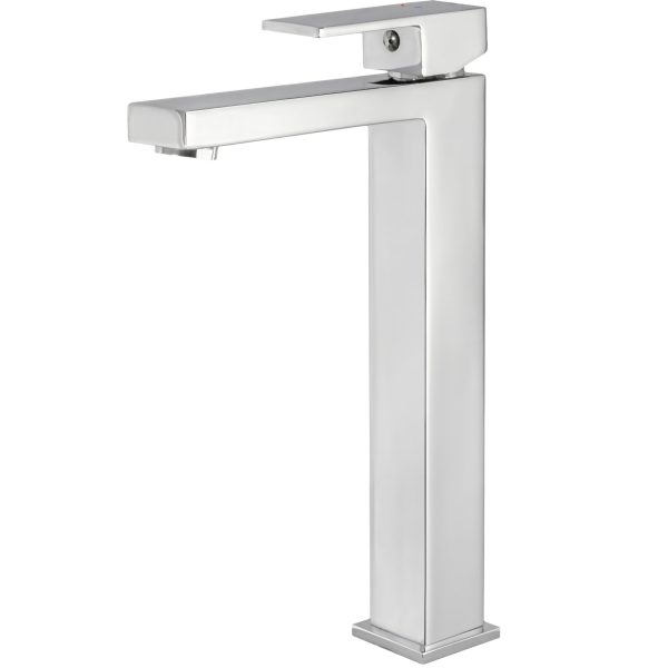 VALAZ Grifo de lavabo alto pica con apertura en agua fría monomando cuadrado cromado serie Muga