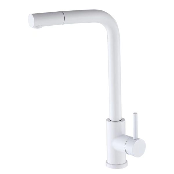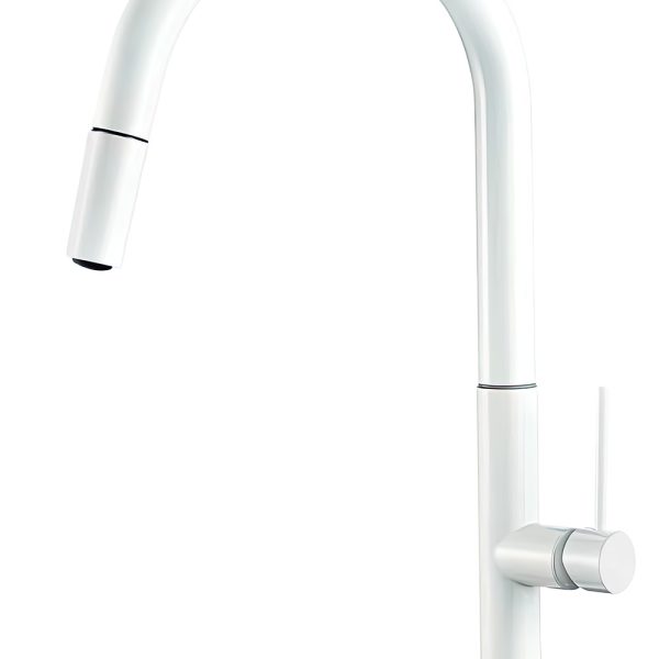 VALAZ Grifo cocina alto extraíble monomando blanco – Serie Eufrates