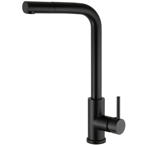 VALAZ Grifo de cocina extraíble redondo negro mate – Serie Amur