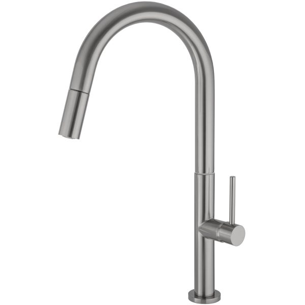 VALAZ Grifo cocina alto extraíble monomando acero cepillado – Serie Éufrates