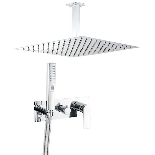 Ducha empotrada monomando cuadrada a techo cromada serie Miño – 40cm