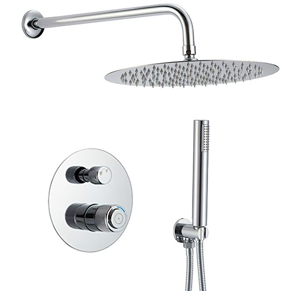 VALAZ Ducha empotrada monomando con botón redonda a pared cromada serie Andarax – 25cm