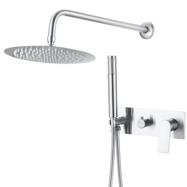 VALAZ Ducha empotrada monomando redonda con embellecedor rectangular cromada serie Sil – 30cm