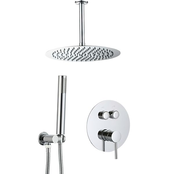 VALAZ Ducha empotrada monomando redonda con pulsadores a techo cromada serie Navia – 30cm
