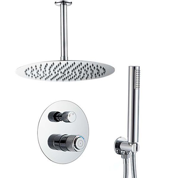 VALAZ Ducha empotrada monomando redonda a techo cromado serie Guadiana – 30cm