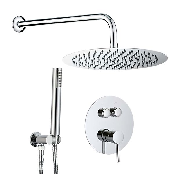 VALAZ Ducha empotrada monomando redonda con pulsadores a pared cromada serie Navia – 20cm