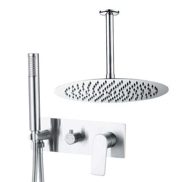 VALAZ Ducha empotrada monomando redonda con embellecedor rectangular a techo cromado serie Sil – 30cm
