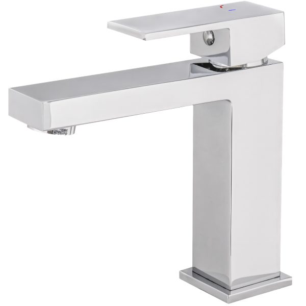 VALAZ Grifo de lavabo con apertura en agua fría monomando cuadrado cromado serie Muga