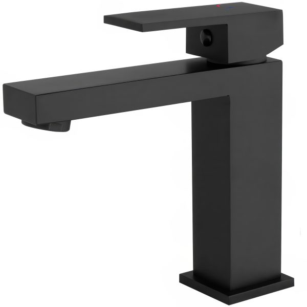 VALAZ Grifo de lavabo con apertura en agua fría monomando cuadrado negro mate – Serie Muga