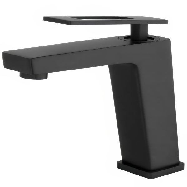 VALAZ Grifo lavabo monomando cuadrado negro mate con maneta hueca – Serie Cabrera