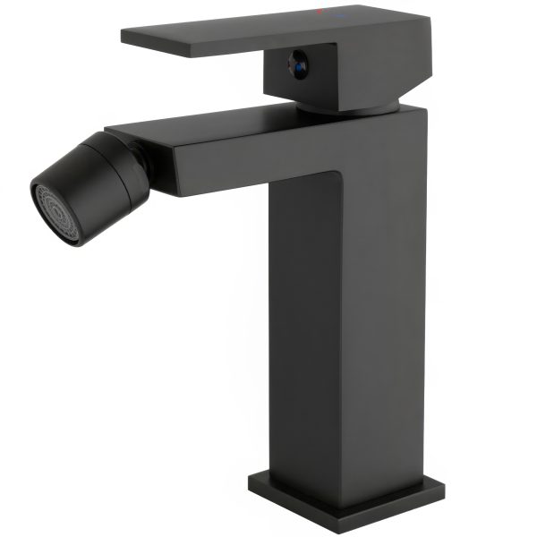 VALAZ Grifo de bidé lavabo con apertura en agua fría monomando cuadrado negro mate – Serie Muga