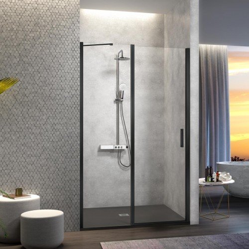 Mampara negra fijo más una hoja abatible pivotante Pivot