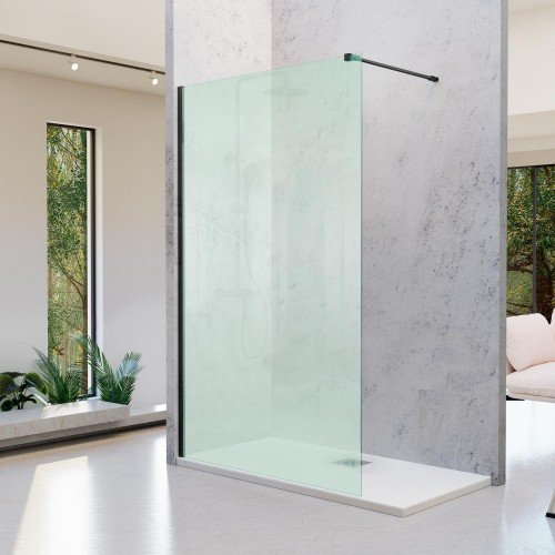 Mampara de ducha fija negra vidrio mateado Fresh