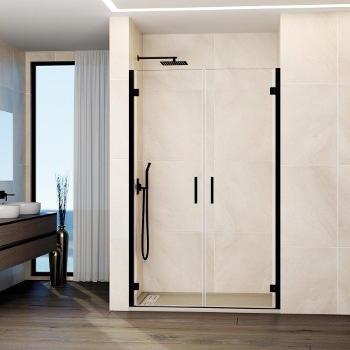 Mampara de ducha negra con 2 puertas abatibles con bisagras Glass