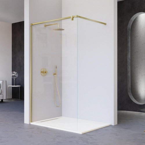 Mampara de ducha fija inox oro cepillado Salomón