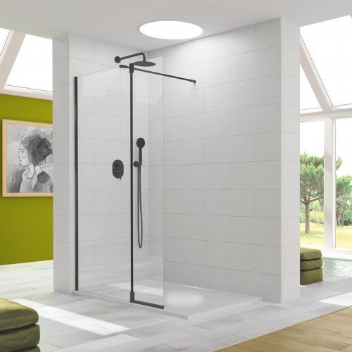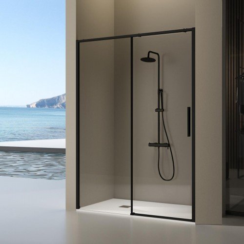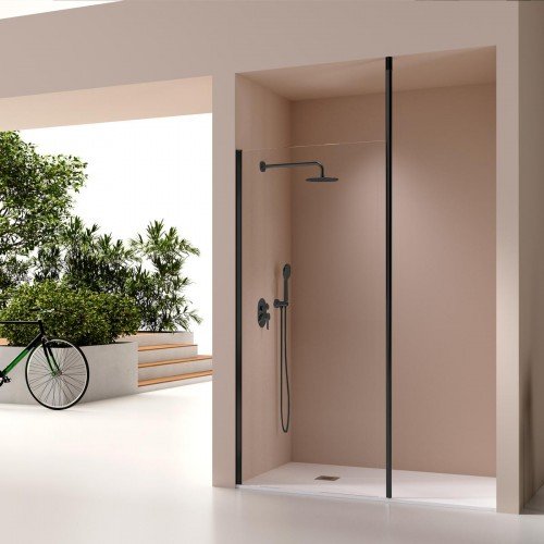 Mampara de ducha negra fijo más corredera sin cierre Moka