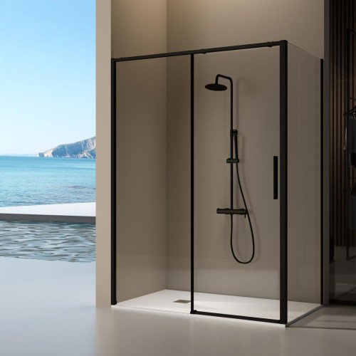 Mampara rectangular negro mate corredera y lateral fijo Delta