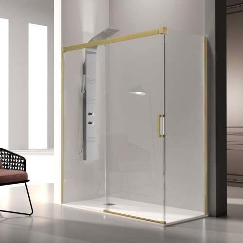 Mampara rectangular oro cepillado corredera y lateral fijo Delta