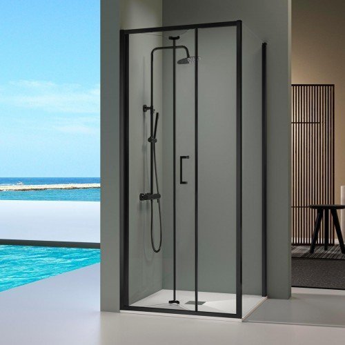 Mampara de ducha negra corredera más lateral fijo Fenix