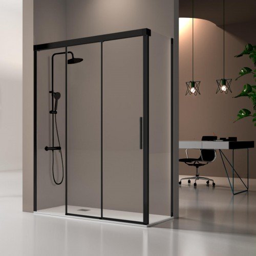 Mampara rectangular negra fijo y corredera + lateral fijo Bella
