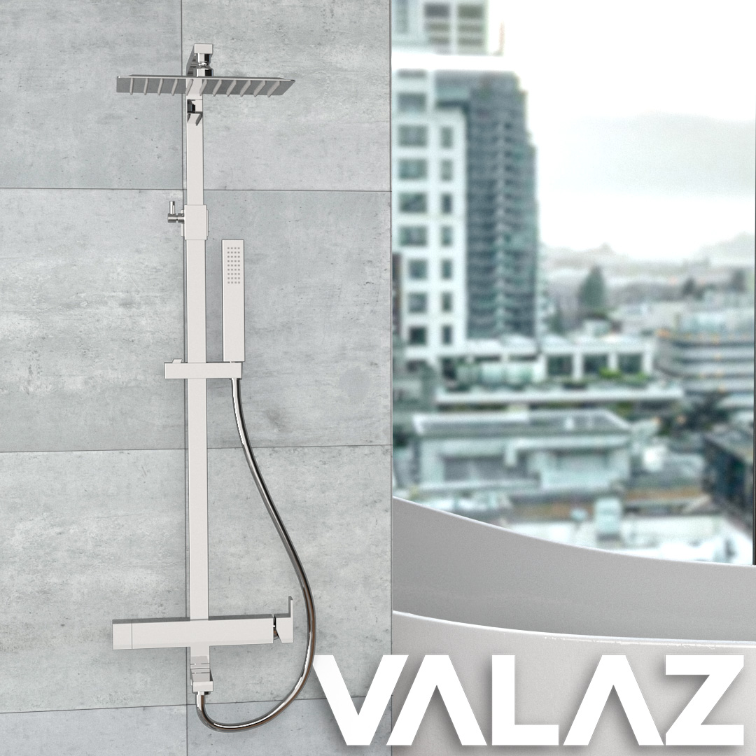 VALAZ Barra de ducha/bañera monomando cuadrada cromada serie Segura – 30cm