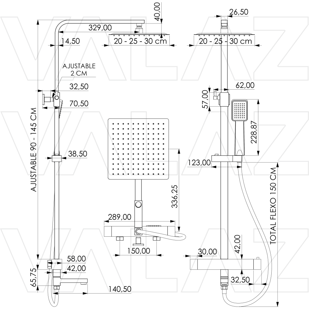 VALAZ Barra de ducha/bañera termostática cuadrada cromado serie Segura – 30cm