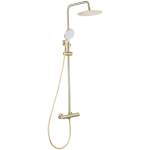 VALAZ Barra de ducha/bañera termostática redonda ajustable hasta 150CM dorado cepillado – Serie Ebro – 20cm
