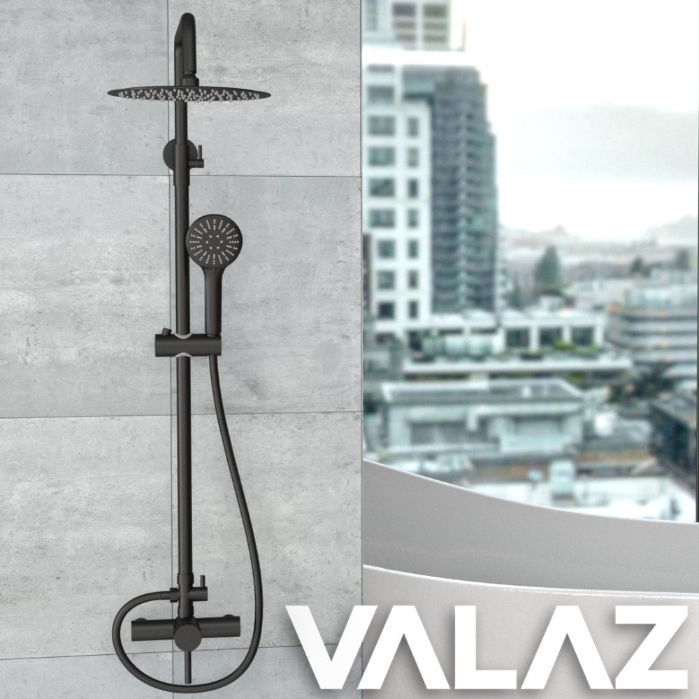 VALAZ Barra de ducha monomando redonda ajustable hasta 120CM negro mate – Serie Ebro – 20cm