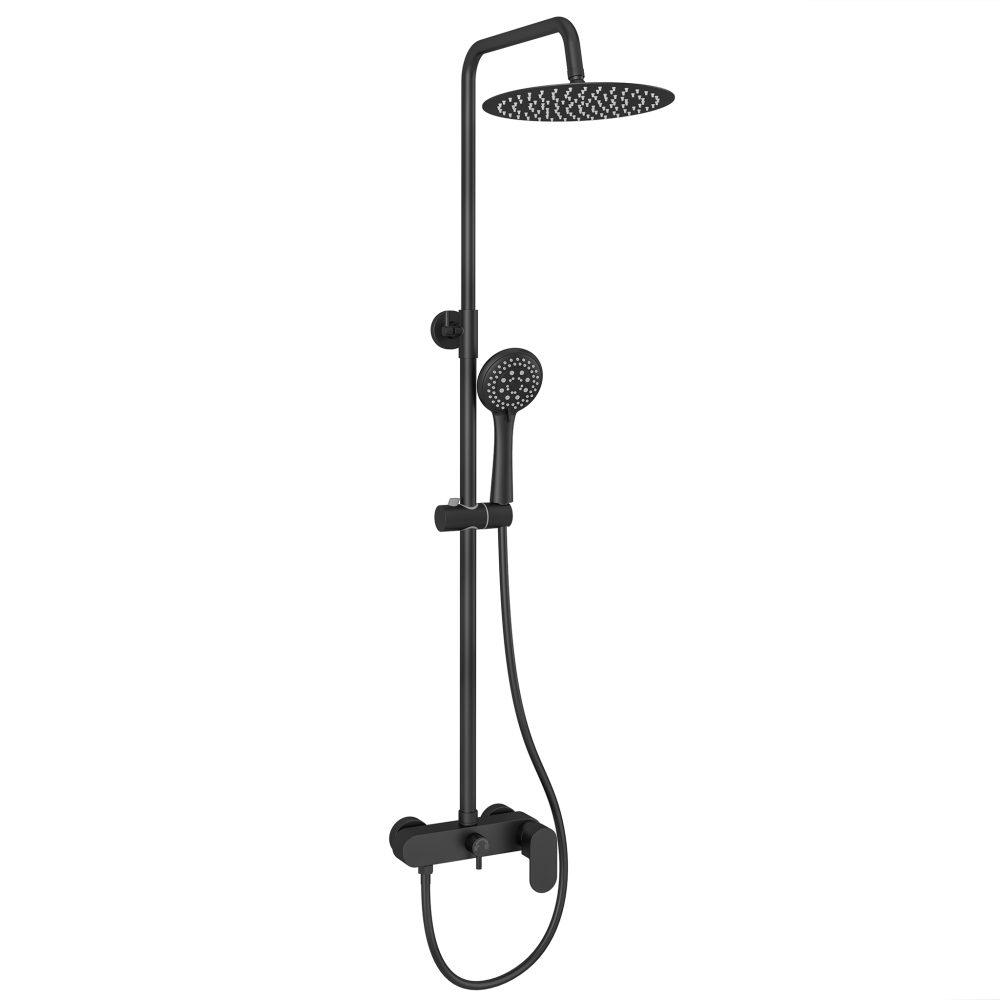 VALAZ Barra de ducha monomando redonda ajustable hasta 150CM negro mate - Serie Viar - 25cm