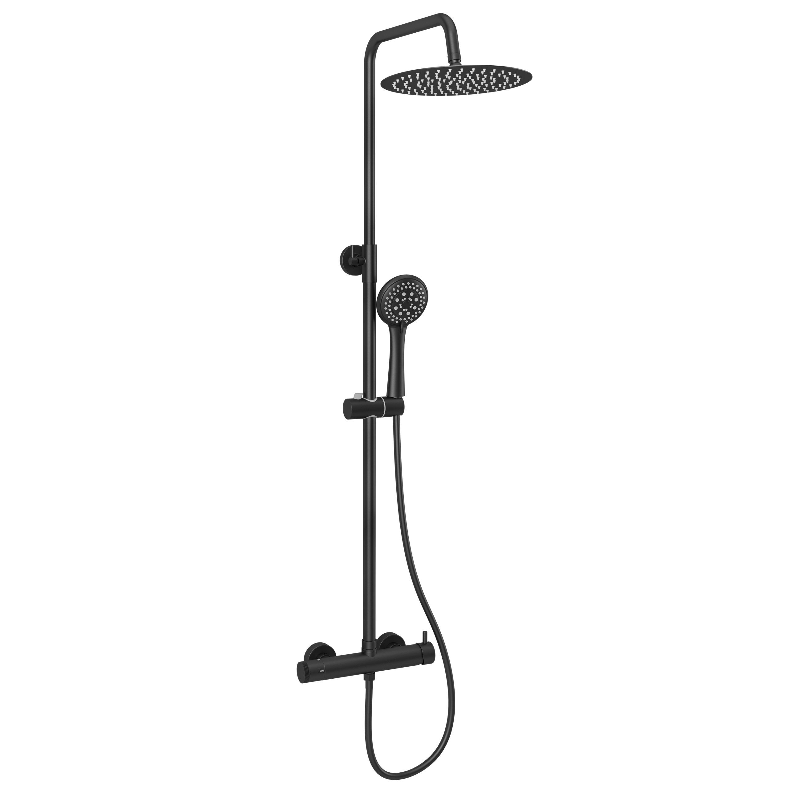 VALAZ Barra de ducha monomando redonda ajustable hasta 120CM negro mate – Serie Jabalón – 25cm