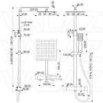 Incluye: Rociador disponible en tamaño 20, 25, 30 y 40 cm, barra extensible de 80cm a 120 cm, cuerpo de la grifería con cartucho y maneta cuadrada, flexo y alcachofa de mano