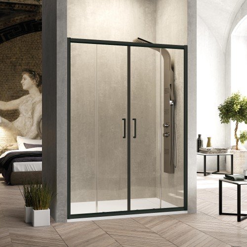 Mampara negra dos fijos más dos hojas correderas Bella 333,09€ - 386,81€Rango de precios: desde 333,09€ hasta 386,81€
