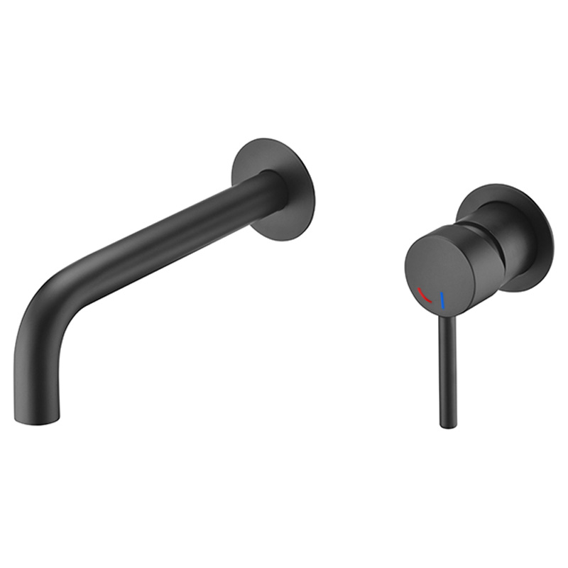 VALAZ Grifo lavabo empotrado redondo monomando negro mate con apertura agua fría con caño 21CM - Serie Selva