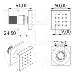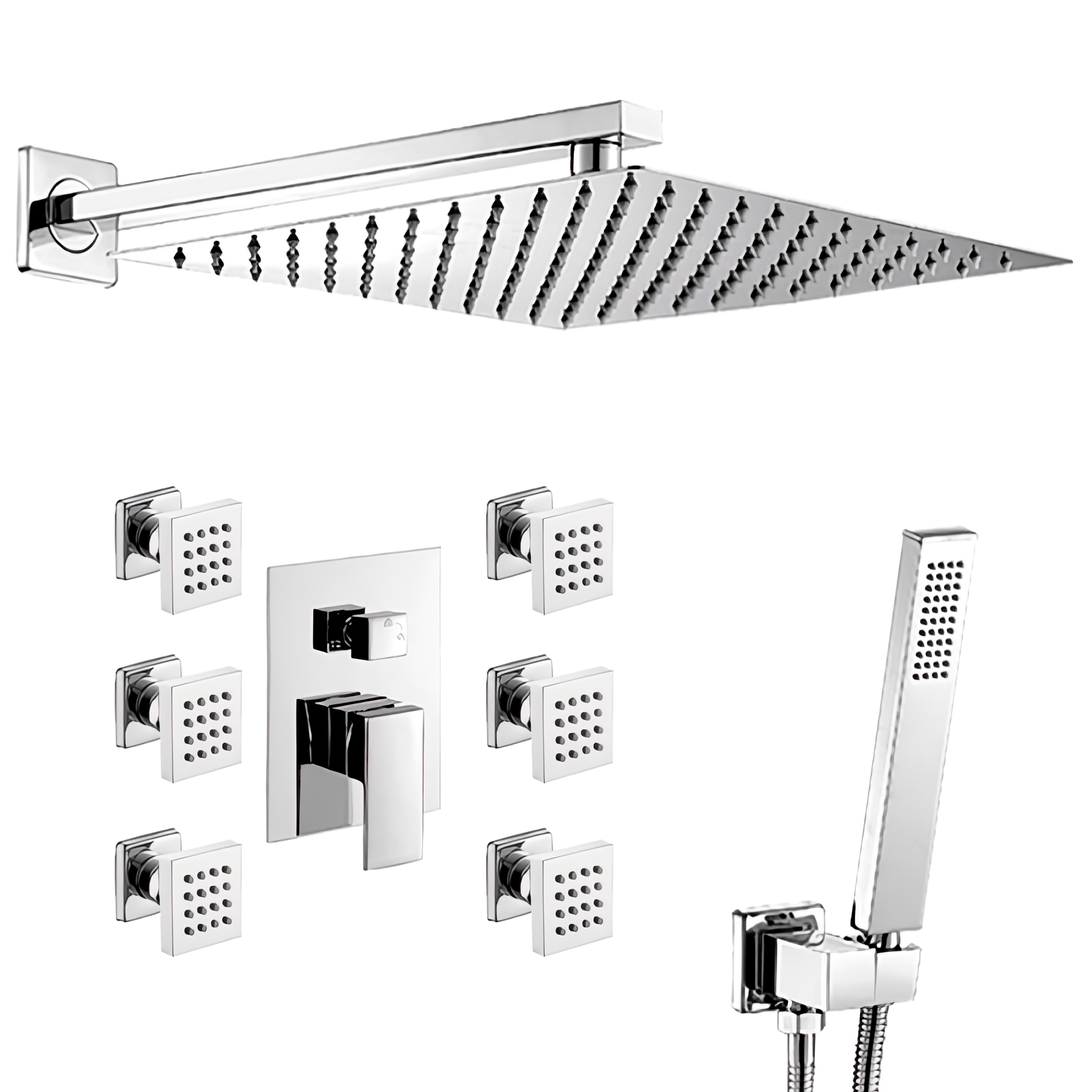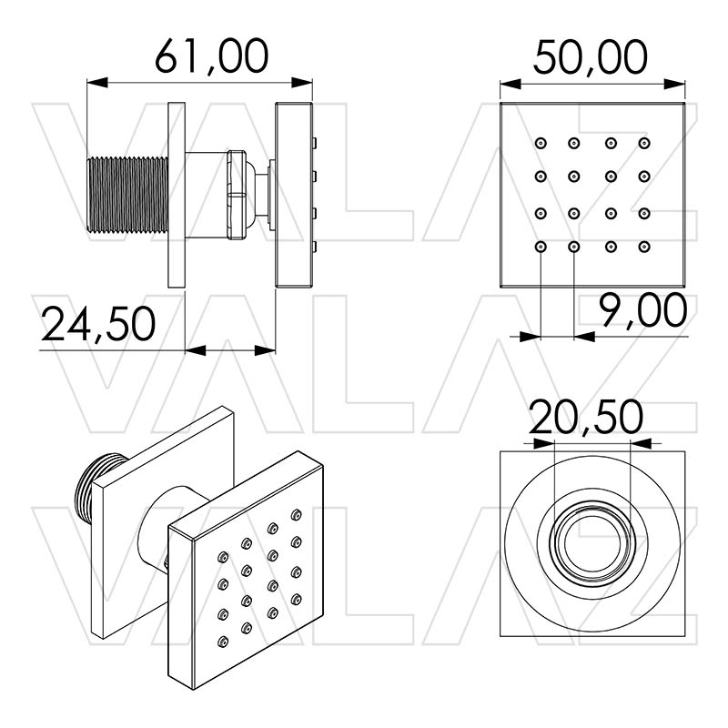 VALAZ Ducha empotrada hidromasaje con 6 jets a pared cuadrada cromada serie Tajo – 25cm