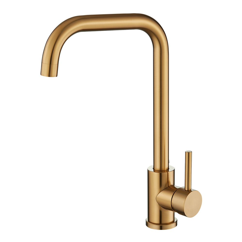 VALAZ Grifo de cocina caño en C monomando giratorio dorado cepillado - Serie Zancara