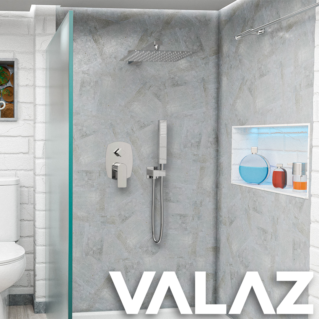 VALAZ Ducha empotrada monomando ovalada/cuadrada a pared cromada – Serie Esla – 25cm