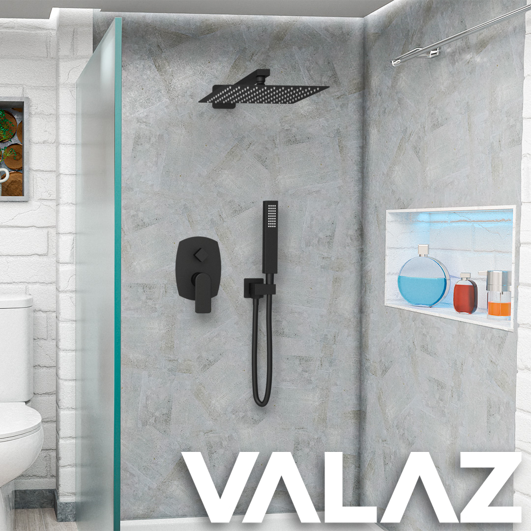 VALAZ Ducha empotrada monomando ovalada/cuadrada a pared negro mate – Serie Esla – 30cm