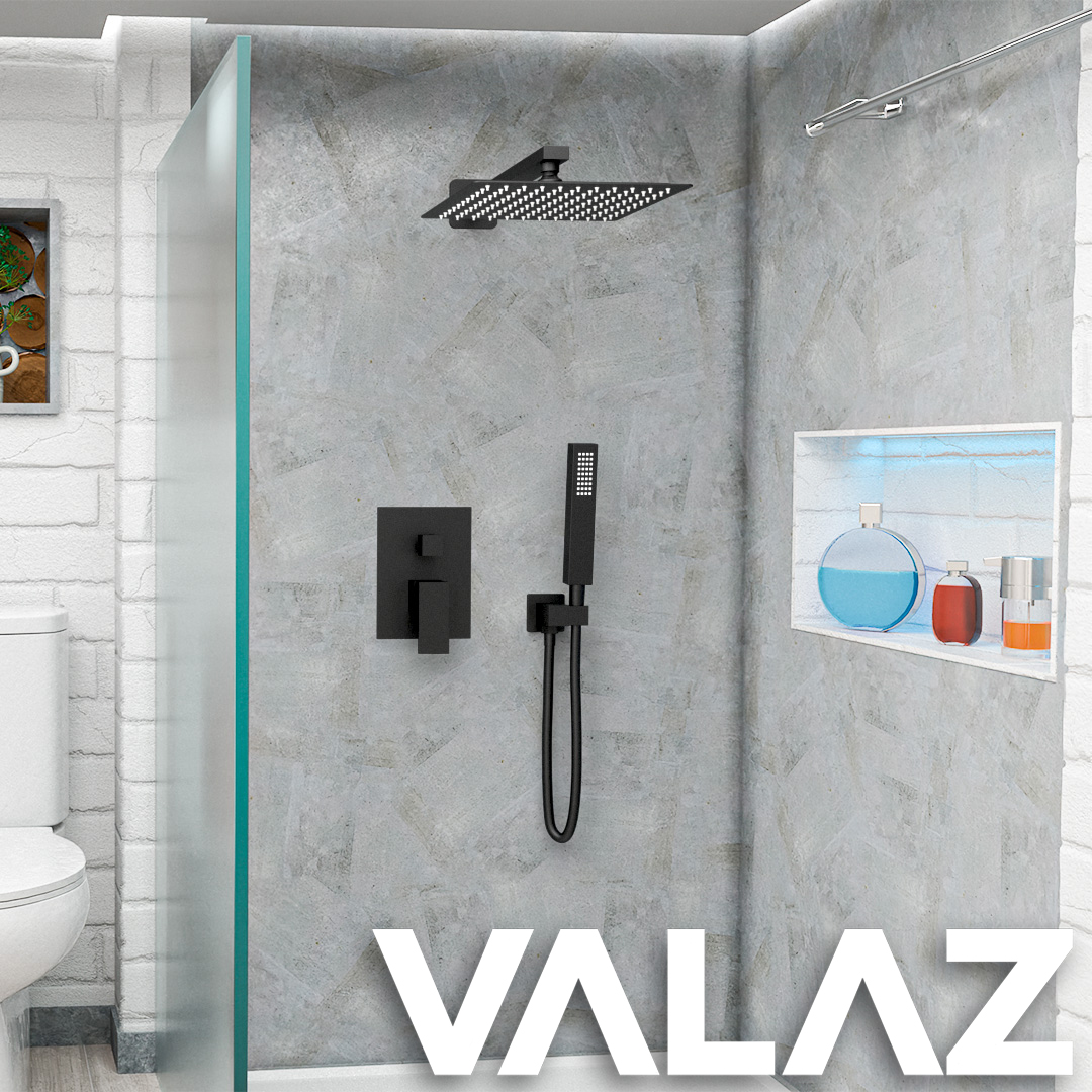 VALAZ Ducha empotrada monomando a pared cuadrada negro mate – Serie Tajo – 40cm