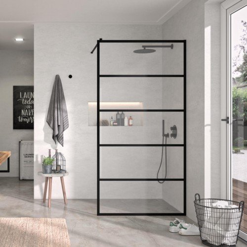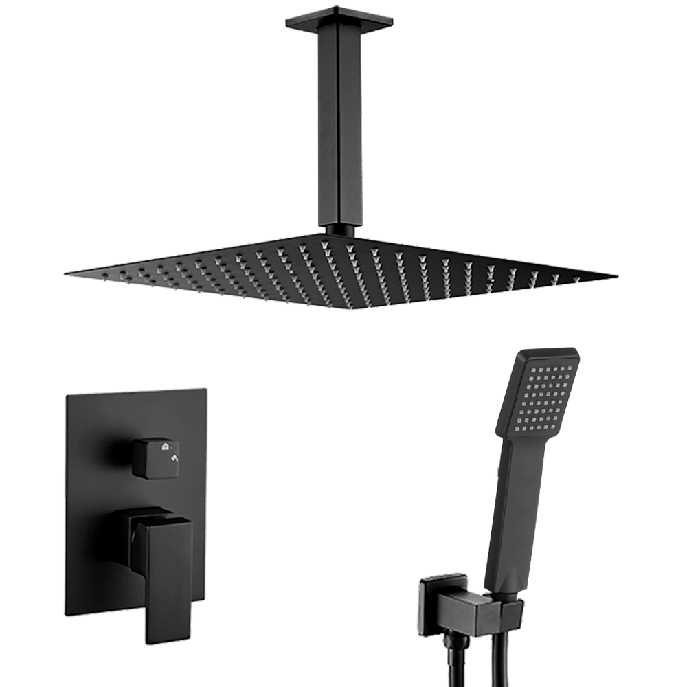 VALAZ Ducha empotrada monomando a techo cuadrada negro mate - Serie Eresma - 30cm