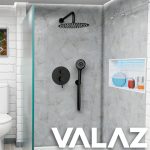 VALAZ Ducha empotrada monomando a pared redonda negro mate con maneta ancha – Serie Cabriel – 20cm